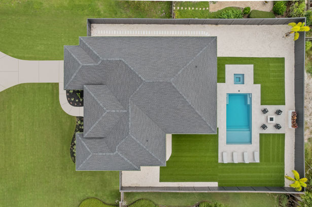 Stepping inside, you'll find three spacious bedrooms and 2.5 baths, complemented by a private gym and a captivating game room. The focal point of this property is the lush backyard oasis featuring a refreshing pool, providing the perfect backdrop for outdoor gatherings and endless sunshine. This architectural gem combines modern luxury with timeless Mediterranean charm, offering a lifestyle of tranquility and coastal sophistication.